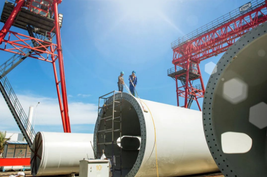 七月,在中國海裝大連莊河項目中,火熱的盛夏配上火熱的搶裝,運維人員正在對24號機組做底段塔筒安裝前的準(zhǔn)備工作。