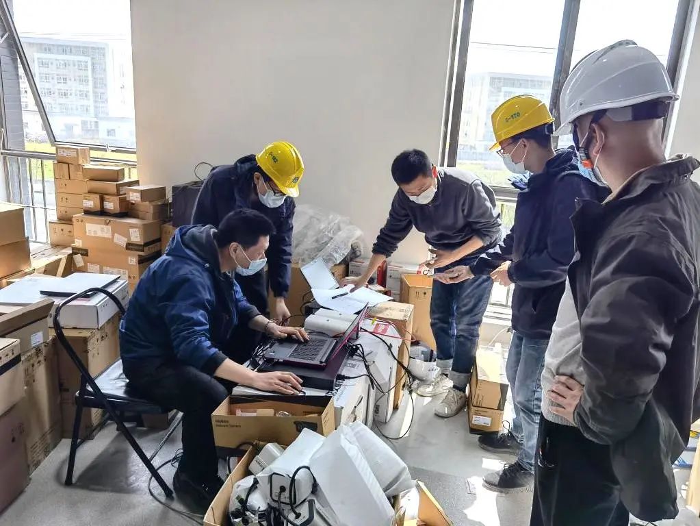 七一六所黨委副書記、所長顧浩接到任務后立即組織研究部署,克服連云港本地疫情的重重困難,迅速在當地集結專業隊伍,同時組織在滬所屬單位抽調精兵強將,聯合集團公司在滬兄弟單位,組成弱電安防施工團隊,分批上島集結開展工作。