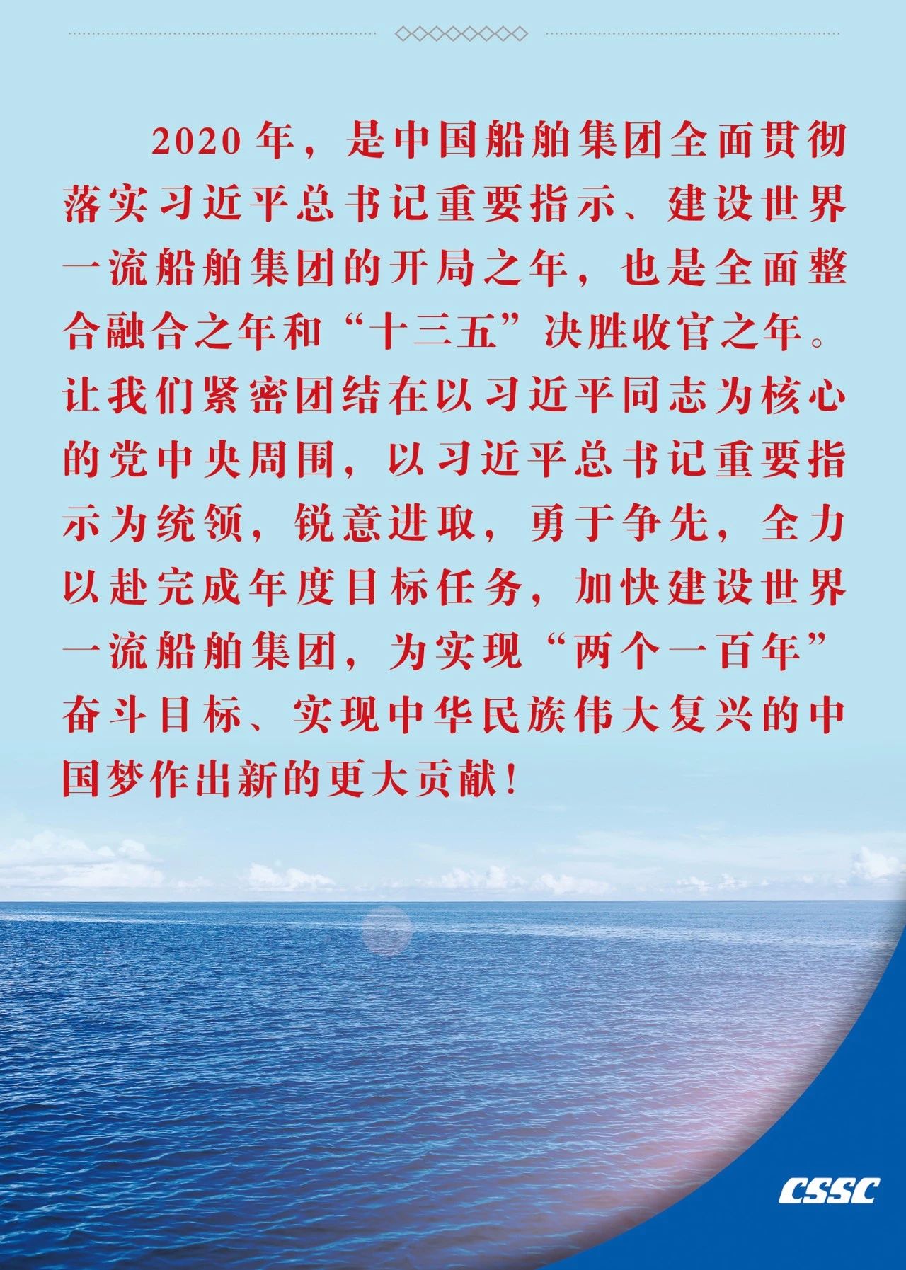 ??1月19日,在中國船舶集團有限公司2020年度工作會議上,中國船舶集團黨組書記、董事長雷凡培作了題為《以習近平總書記重要指示為統領 奮力開啟建設世界一流船舶集團新征程》的工作報告。