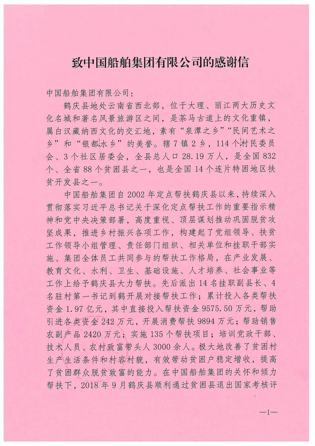 中國船舶集團收到定點幫扶地區感謝信