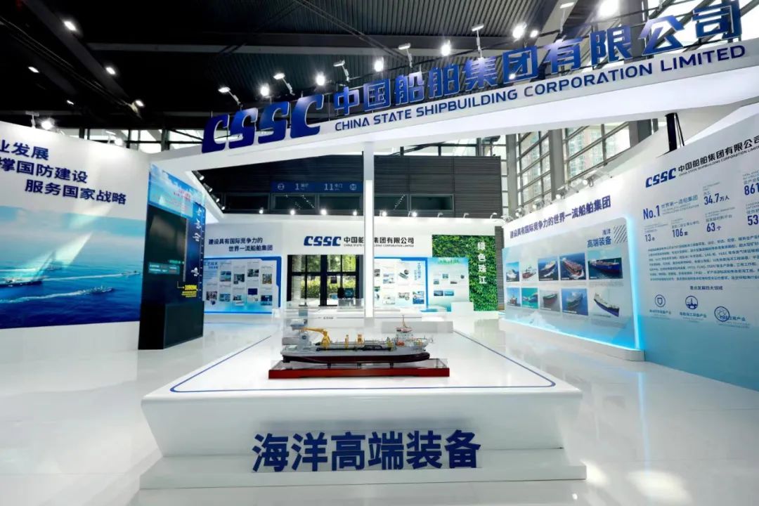 在大會(huì)的展示環(huán)節(jié),中國(guó)船舶集團(tuán)展臺(tái)通過(guò)集團(tuán)總體、海洋防務(wù)、海洋高端裝備、工藝技術(shù)創(chuàng)新發(fā)展、海洋經(jīng)濟(jì)新業(yè)態(tài)、工匠風(fēng)采、“奮斗者”號(hào)、綠色珠江八個(gè)板塊,分別展出了7500立方米液態(tài)二氧化碳運(yùn)輸船、半潛式全自動(dòng)現(xiàn)代化三文魚深海養(yǎng)殖裝備、合金鋼中間軸在大型油船上的首次應(yīng)用等55項(xiàng)創(chuàng)新成果,并展示了28位工匠代表的風(fēng)采。集團(tuán)公司展臺(tái)采用開放、通透的布局,突出中國(guó)船舶品牌元素,集中展示集團(tuán)公司立足新發(fā)展階段,貫徹新發(fā)展理念,在戰(zhàn)略重組后以高質(zhì)量發(fā)展為主題,壯大主業(yè)實(shí)業(yè)、加快推動(dòng)船海產(chǎn)業(yè)向中高端轉(zhuǎn)型發(fā)展,以及大力弘揚(yáng)軍工精神和勞模精神、勞動(dòng)精神、工匠精神,強(qiáng)化自主創(chuàng)新的整體實(shí)力和在推動(dòng)低碳環(huán)保、區(qū)域經(jīng)濟(jì)發(fā)展等方面的最新成果。集團(tuán)公司還通過(guò)本屆大會(huì)“互聯(lián)網(wǎng)+展會(huì)”模式開設(shè)的“云展會(huì)”,讓參觀者線上云游中國(guó)船舶展臺(tái),擴(kuò)大企業(yè)品牌影響力。
