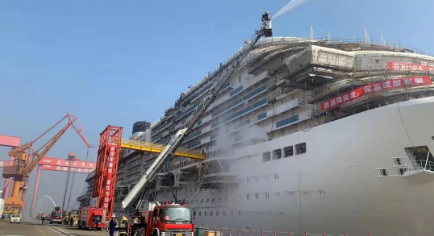 船舶建造過程中動火作業多、交叉作業多、有限空間多,消防安全一直以來都是企業安全生產工作的重點。本次演練選取大型郵輪作為演練對象,情景模擬船上發現火情后,外高橋造船以及聯合演練單位的消防隊伍實施協同救援,包括初期火情應對、應急報告、船上人員疏散、被困人員搜救、滅火等內容,檢驗了企業應對突發火情的快速反應能力和協同作戰能力。