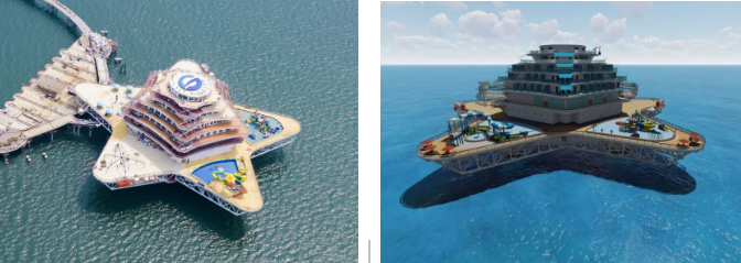 以濱海城市為依托,該方案重點建設(shè)需求旺盛、基礎(chǔ)好、見效快的“海洋文旅+深海養(yǎng)殖+海上風(fēng)電+海洋信息管網(wǎng)”4個要素單元,釋放旅游、養(yǎng)殖、綠色能源耦合效應(yīng)。綜合體采用模塊化設(shè)計、區(qū)域化協(xié)同部署,由濱海向深遠海帶狀輻射,布局建設(shè)游輪游艇群、養(yǎng)殖文旅平臺、深海養(yǎng)殖產(chǎn)業(yè)園、分布式海上風(fēng)電場及智能微電網(wǎng)、深海移動養(yǎng)殖工廠和海洋信息管網(wǎng)等風(fēng)漁文旅結(jié)合項目。以郵輪游艇連接海上設(shè)施,構(gòu)建海上旅游娛樂交通網(wǎng),以中小型郵輪航線實現(xiàn)沿海城市綜合體間串聯(lián),構(gòu)建沿海城市海上旅游觀光帶,同時培育郵輪與康養(yǎng)休閑岸海互動融合模式,捕捉、帶動、滿足多元化潛在消費需求,打造風(fēng)漁文旅等一二三產(chǎn)業(yè)融合新業(yè)態(tài),形成沿海藍色海洋經(jīng)濟帶。