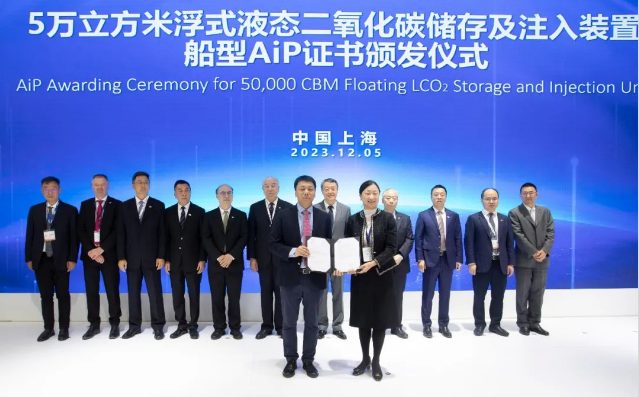 在展會(huì)現(xiàn)場(chǎng),辛國(guó)斌、溫剛等參觀了集團(tuán)公司展臺(tái),并共同見證了中國(guó)船舶集團(tuán)與法國(guó)GTT公司簽訂2023版諒解備忘錄(MOU)、大連造船海洋CCUS產(chǎn)業(yè)鏈產(chǎn)品頒證、5萬立方米浮式液態(tài)二氧化碳儲(chǔ)存及注入裝置船型AIP證書頒發(fā)儀式、2萬及1.2萬立方米液態(tài)二氧化碳運(yùn)輸船船型AIP證書頒發(fā)儀式。
