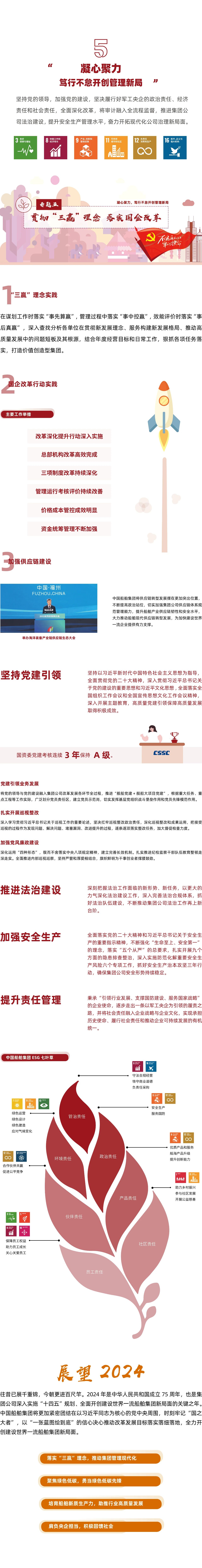 《報告》講述了中國船舶集團貫徹新發(fā)展理念,堅持價值創(chuàng)造,發(fā)展壯大主業(yè)實業(yè),增強經(jīng)營管理能力,加快深化改革,建設世界一流船舶集團的成績。主體章節(jié)圍繞“強軍勝戰(zhàn),乘風破浪逐夢萬里海天”“向海圖強,披荊斬棘打造大國重器”“綠色發(fā)展,踐行低碳共建生態(tài)文明”“勇?lián)姑娭境沙亲囗懞椭C樂章”“凝心聚力,篤行不怠開創(chuàng)管理新局”五個方面全面展示了中國船舶集團履行政治責任、經(jīng)濟責任、環(huán)境責任、社會責任的實踐成效。