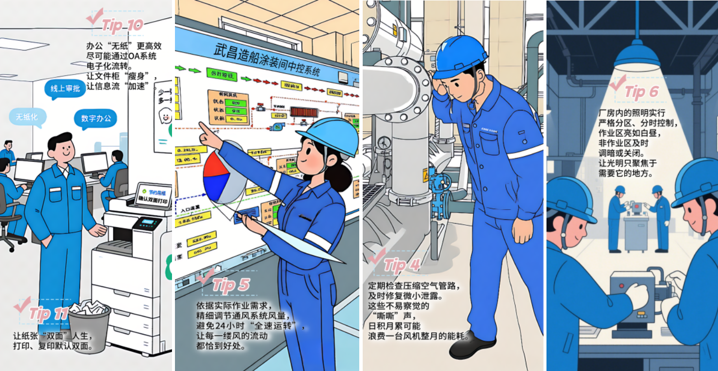 江南造船通過宣教結(jié)合的方式,組織開展了形式多樣、內(nèi)容豐富的節(jié)能宣傳活動。圍繞節(jié)能宣傳周活動主題,專門編制《2025年“全國節(jié)能宣傳周”——節(jié)能管理學(xué)習(xí)》的班組學(xué)習(xí)材料,對每個(gè)員工進(jìn)行宣貫;集中開展“我為節(jié)能獻(xiàn)一策”活動,面向全體員工征集節(jié)能建議,助推節(jié)能減排、綠色低碳理念進(jìn)生產(chǎn)、進(jìn)辦公、進(jìn)班組;組織專項(xiàng)節(jié)能檢查,對生產(chǎn)、辦公區(qū)域的能源使用情況進(jìn)行自查自糾,進(jìn)一步強(qiáng)化員工節(jié)能降碳意識。