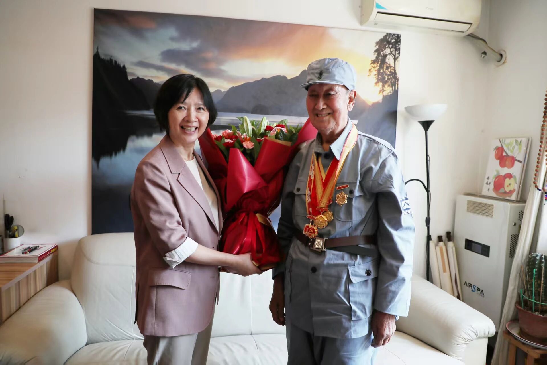 在紀念中國人民抗日戰(zhàn)爭暨世界反法西斯戰(zhàn)爭勝利80周年之際,中國船舶集團有限公司黨組副書記、董事賈海英走訪慰問抗戰(zhàn)老兵焦英杰,頒發(fā)“中國人民抗日戰(zhàn)爭勝利80周年”紀念章,并代表集團公司黨組向他致以崇高敬意和誠摯問候。