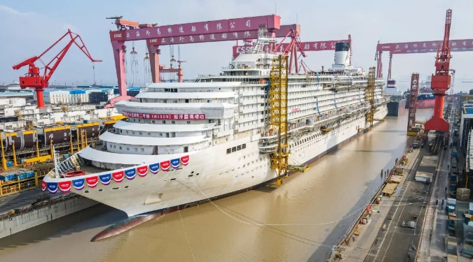 4月28日,第二艘國(guó)產(chǎn)大型郵輪“愛達(dá)·花城號(hào)”起浮儀式在中國(guó)船舶集團(tuán)有限公司旗下外高橋造船舉行。中船集團(tuán)黨組副書記、董事、總經(jīng)理王國(guó)強(qiáng)出席儀式并致辭。工信部裝備工業(yè)二司司長(zhǎng)徐春榮,中旅集團(tuán)黨委副書記、總經(jīng)理范云軍出席儀式并致辭。文旅部產(chǎn)業(yè)發(fā)展司副司長(zhǎng)馬力,中船集團(tuán)黨組成員、副總經(jīng)理胡賢甫,中旅集團(tuán)黨委副書記、董事石善博,上海市經(jīng)濟(jì)和信息化委員會(huì)副主任蒲亞鵬,浦東新區(qū)副區(qū)長(zhǎng)李慧出席儀式。