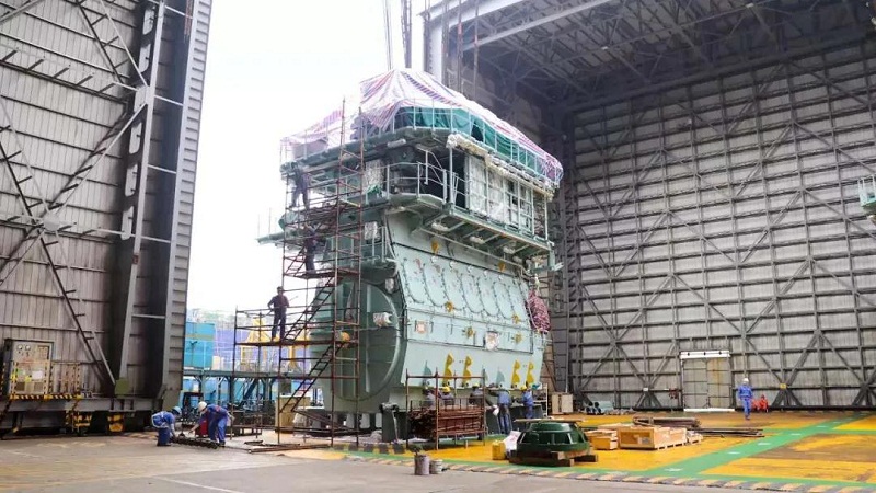 震撼延時帶你看四層樓高船舶主機吊裝全過程