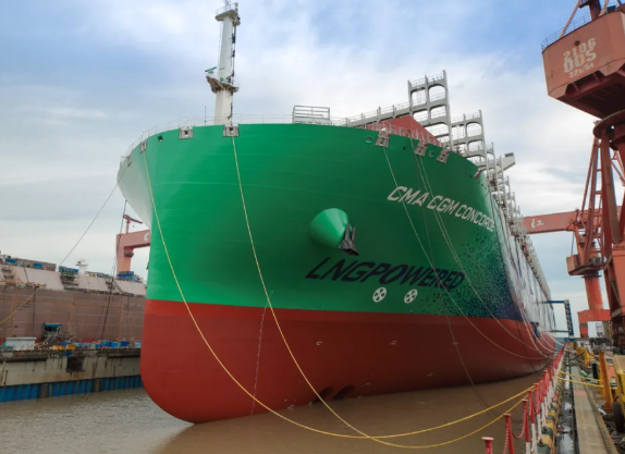 23000箱液化天然氣動力集裝箱船2號船緩緩駛離碼頭,按期開始常規(guī)試航。相比首制船,2號船試航完整性更好,碼頭周期進(jìn)一步縮短。