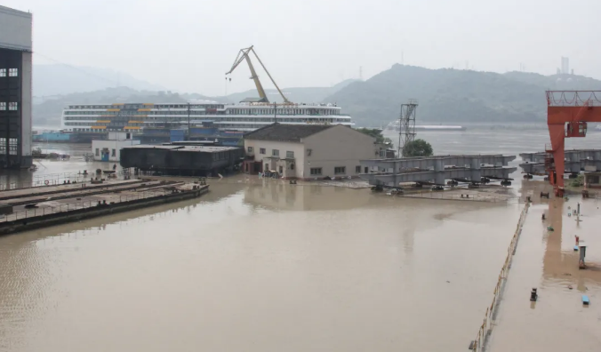 8月19~20日,長江洪峰先后到達(dá)東港船舶和川船重工。東港船舶船臺碼頭、104廠房、鋼結(jié)構(gòu)新堆場、103總拼廠房被淹。川船重工2-4、2-5、2-6室內(nèi)船臺,涂裝廠房、主機(jī)庫、變壓站、下水斜架絞車房等主要生產(chǎn)場地被淹,廠房內(nèi)進(jìn)水已達(dá)1米深。