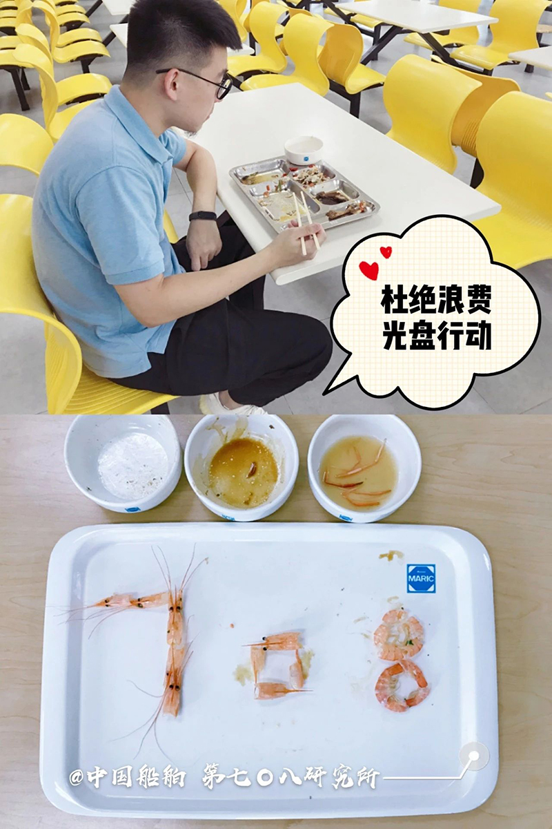“誰(shuí)知盤中餐,粒粒皆辛苦。” 自古以來(lái) 敬天惜糧、勤儉節(jié)約就是 中華民族傳統(tǒng)美德 中國(guó)船舶集團(tuán)多家成員單位 用實(shí)際行動(dòng) 杜絕“舌尖上的浪費(fèi)”