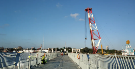 日前,中國(guó)船舶集團(tuán)旗下中船應(yīng)急承建的肯尼亞蒙巴薩人行浮橋正式建成通行。蒙巴薩作為肯尼亞第二大城市,是全國(guó)重要工商業(yè)中心,其港口為非洲東海岸最大海港。浮橋的建成,使蒙巴薩主島和周邊地區(qū)兩岸居民通行時(shí)間由原來(lái)的45分鐘縮短至10分鐘,極大方便了當(dāng)?shù)鼐用癯鲂?。同時(shí),浮橋通航孔的設(shè)計(jì)可滿足萬(wàn)噸大型船舶暢通進(jìn)出蒙巴薩港口。
