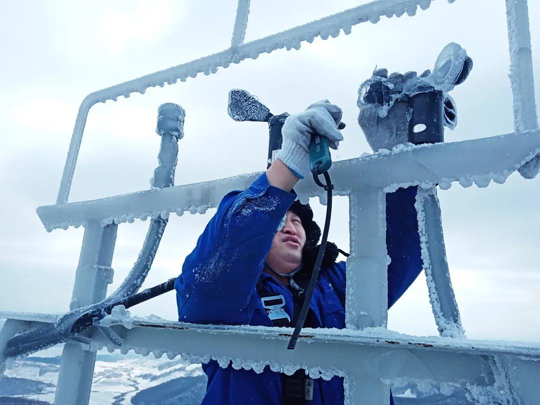 在遼寧昌圖天橋山項目,面對大雪降溫天氣,全體員工為保障風電機組安全正常運行,合力推車前往機位搶修。為恢復機組正常運行,運維人員人工給風速風向儀除冰。風雪之中,總有人穿風沐雪,在逆行在奮戰,他們浴“雪”奮戰,卻說高處能勝寒。