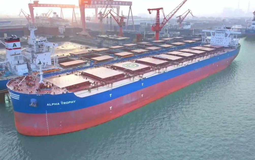 1月1日上午,中國船舶集團旗下外高橋造船聯(lián)合中船貿(mào)易建造的21萬噸紐卡斯爾型散貨船“ALPHA TROPHY”號簽字交船,這是中國船舶企業(yè)新的一年完工交付的第一艘船,開啟中國船舶制造業(yè)2022年昂揚奮進新征程。
