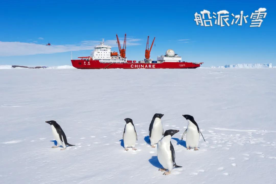 “‘雪龍’號,你站那兒別動,讓我擺個Pose,我要上頭條!”南極企鵝的新年第一照。