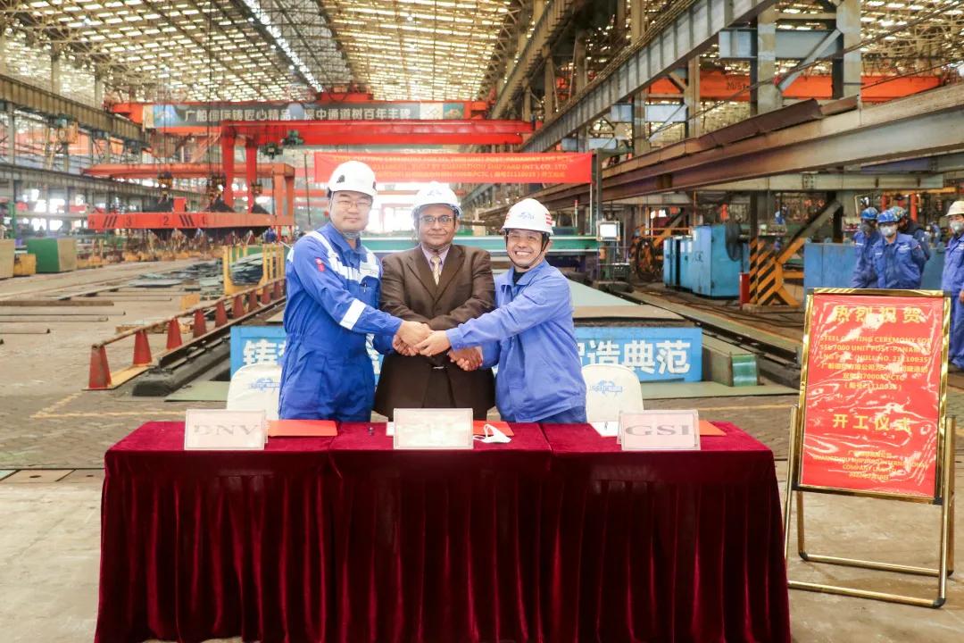 2月18日,廣船國際為挪威SFL公司建造的7000車雙燃料汽車運(yùn)輸船(PCTC)首制船舉行開工儀式,這是華南地區(qū)建造的首艘雙燃料汽車運(yùn)輸船,也是廣船國際春節(jié)后開工建造的第一艘船。