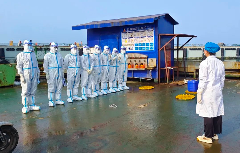 在每一艘船舶即將駛向交付目的地時,中船廣西防疫辦專門組織專業(yè)的醫(yī)護人員對參與送船的員工進行防護培訓(xùn),并開展應(yīng)急演練,同時要求船舶靠岸時統(tǒng)一穿著防護服,無指令不得上岸。此外,該公司還安排專車對送船員工進行點對點接送,杜絕一切與外界接觸的可能。