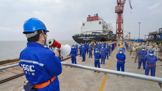 4月25日,根據上海市經信委和中國船舶集團關于分批有序推動企業復工復產的部署要求,經崇明區政府和相關疾控專家的專項檢查及工作指導,中國船舶集團旗下滬東中華造船長興造船基地實現復工復產。