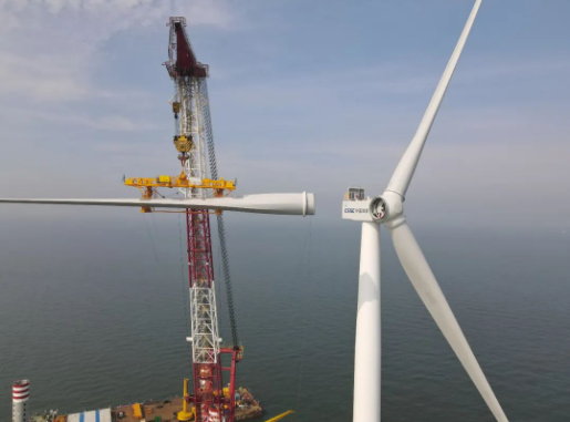中船海裝機組在山東能源渤中海上風電A場址項目進行吊裝