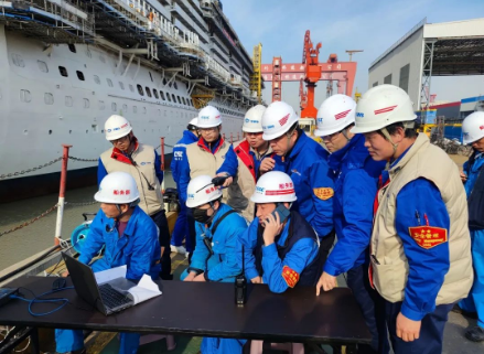 郵輪項目黨支部踐行郵輪大項目黨建體系,組織開展郵輪雙爭、郵輪攻堅、郵輪提能、郵輪干凈、郵輪文化五大工程,切實把黨組織的政治優勢和組織優勢轉化為大型郵輪的建造優勢。