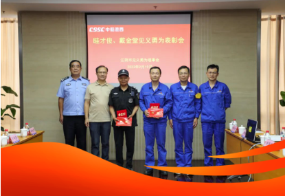 9月19日,江陰市見義勇為基金會(huì)專程來到中國船舶集團(tuán)旗下中船澄西,對(duì)生產(chǎn)管理部眭才俊進(jìn)行表彰。