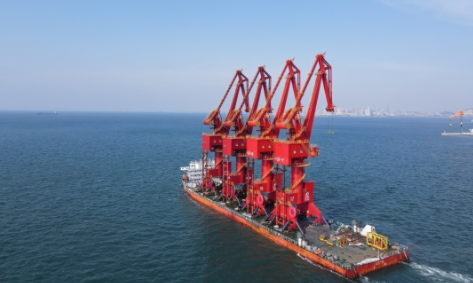 武漢船機海西重機為連云港徐圩港口控股集團有限公司制造的2臺40T-43M門機、為江蘇連云港港口股份有限公司制造的2臺40T-43M門機同船發運,是該公司龍年春節開工以來發運的首批港口起重機械產品。