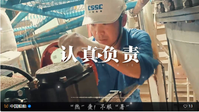 中船發動機——調試人員頂著高溫在認真安裝傳感器,汗水濕透了衣裳。