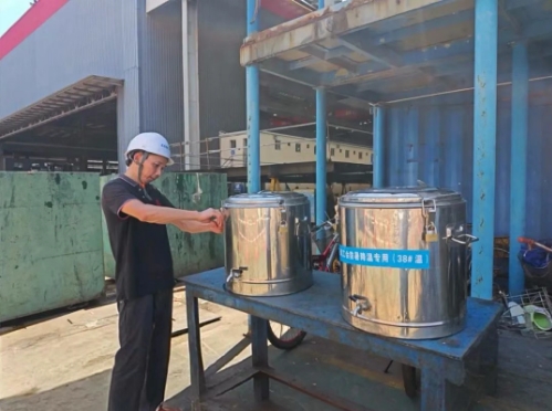 在飲食消暑保障上,大船天津構建起全鏈條清涼補給體系。清涼解暑的綠豆湯成為員工餐桌上的“標配”,供隨餐飲用;4000余箱瓶裝水以及大批藿香正氣水作為夏季防暑降溫物資配送至各部門、各協作單位班組;作業現場的冰柜里,清涼飲品隨時待取;為協作單位員工送上遮陽草帽,讓清涼關懷覆蓋每一位一線勞動者。