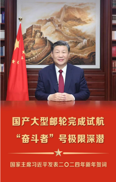 倍受鼓舞!國家主席習近平發表二〇二四年新年賀詞,點贊國產大型郵輪、“奮斗者”號!