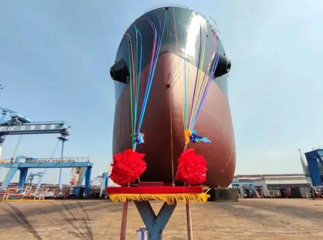 ???上午9點,中船澄西為交銀租賃建造的22號8.2萬噸散貨船順利下水,該船是中船澄西復(fù)工復(fù)產(chǎn)以來建造下水的第四艘新船。該型船為第三代卡爾薩姆型散貨船,總長229 米,型寬32.26米,設(shè)計吃水12.2米,載重8.12萬噸,滿足無限航區(qū)航行要求。