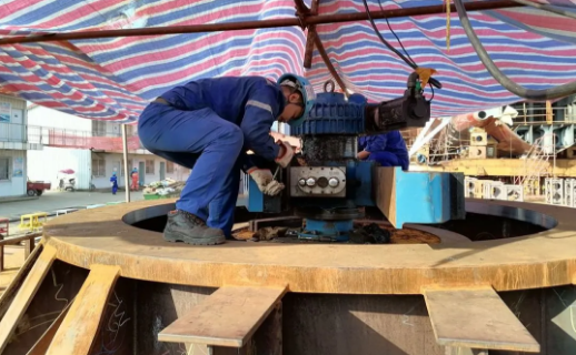 ????武船集團高質(zhì)量完成了基座上船焊接前粗鏜孔工作,外徑φ3400毫米、內(nèi)徑φ2670毫米的基座內(nèi)孔和上平面加工一次成型,報檢一次合格,受到質(zhì)檢部門及船東的一致好評,被評為“優(yōu)等品”。
