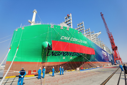 12月22日,中國(guó)船舶集團(tuán)旗下江南造船、 七〇八所攜手中船貿(mào)易為法國(guó)達(dá)飛集團(tuán)建造的23000TEU超大型雙燃料集裝箱船,“達(dá)飛盧浮宮”號(hào)正式命名交付。該船是中國(guó)船舶集團(tuán)承建法國(guó)達(dá)飛集團(tuán)9艘23000TEU系列船中的第4艘,也是江南造船交付的第2艘。