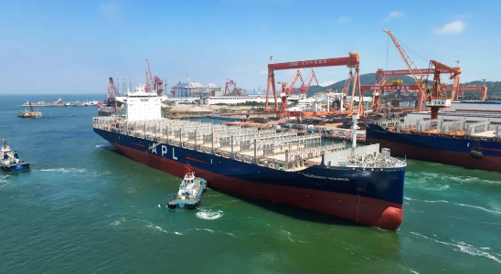 日前,中國船舶集團旗下中船貿易聯合北海造船,為達飛輪船建造的第五艘5500TEU集裝箱船命名交付。