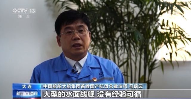 中國船舶大船集團(tuán)首艘國產(chǎn)航母總建造師馬瑞云:第一次生產(chǎn)這種超過300多米長的大型的水面戰(zhàn)艦,沒有經(jīng)驗(yàn)可循。