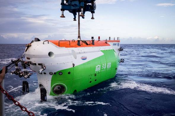 △潛入海底萬(wàn)米的深潛器“奮斗者號(hào)”