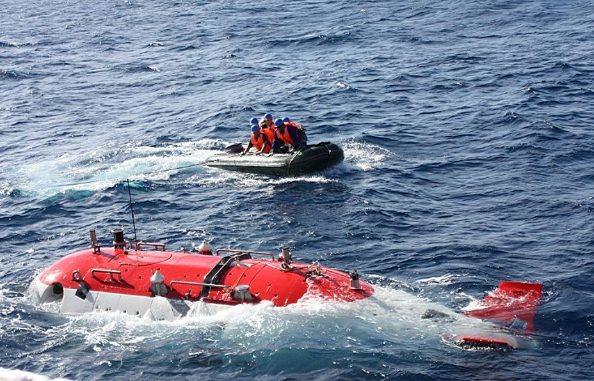 △2012年蛟龍?zhí)?000米級(jí)海試 蛙人正在靠近蛟龍?zhí)?
