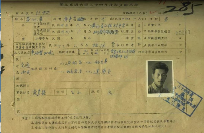 “國(guó)立交通大學(xué)”這所當(dāng)時(shí)在科學(xué)技術(shù)領(lǐng)域全國(guó)首屈一指的學(xué)術(shù)殿堂,在黃旭華心中是神圣而遙遠(yuǎn)的。以至于當(dāng)真正有機(jī)會(huì)填寫(xiě)被保送大學(xué)的名字時(shí),他竟然沒(méi)有勇氣填上“國(guó)立交通大學(xué)”的名字,只填上了一個(gè)中央大學(xué)的航空系。