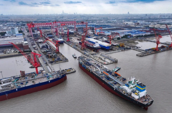 12月,中國船舶集團旗下外高橋造船的碼頭船塢依舊是熱火朝天的繁忙景象。上周,外高橋造船相繼完成新船命名、出塢、入塢和試航等八個生產大節點,向著全面超額完成年度生產目標發起“總攻”。